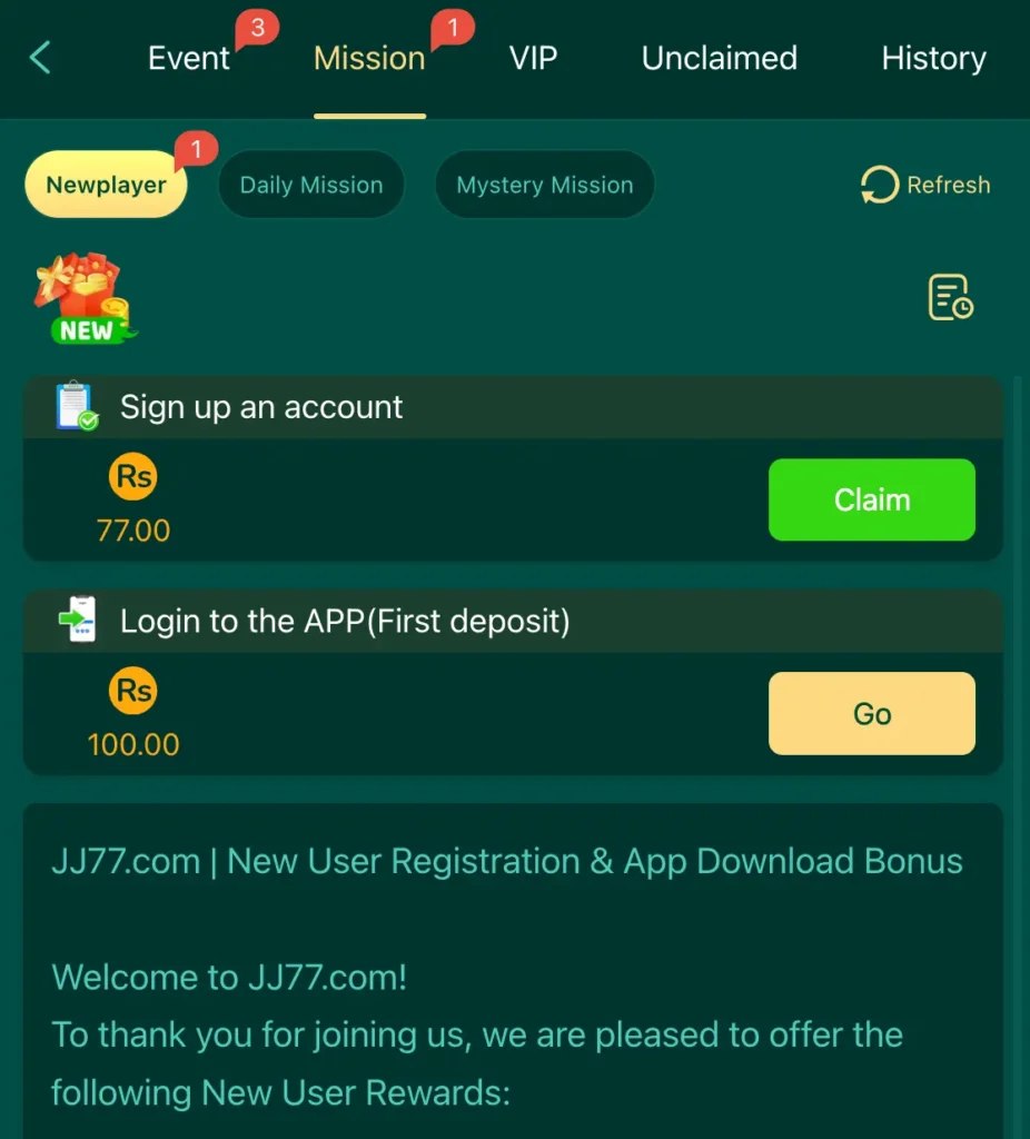 JJ77 Game provides an easy way to enjoy games and earn small rewards. It is simple, fast, and accessible for mobile users. The app is designed to deliver quick entertainment with minimal effort, making it suitable for users of all experience levels. Its smooth performance and easy-to-use interface help users get started without any confusion.
